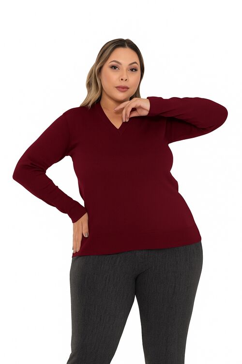 Home / Produtos / Feminino / Jaqueta, Tricot & Blusão Plus Size e Slim / Blusa Malha com Elastano Plus Size Vinho Jaú