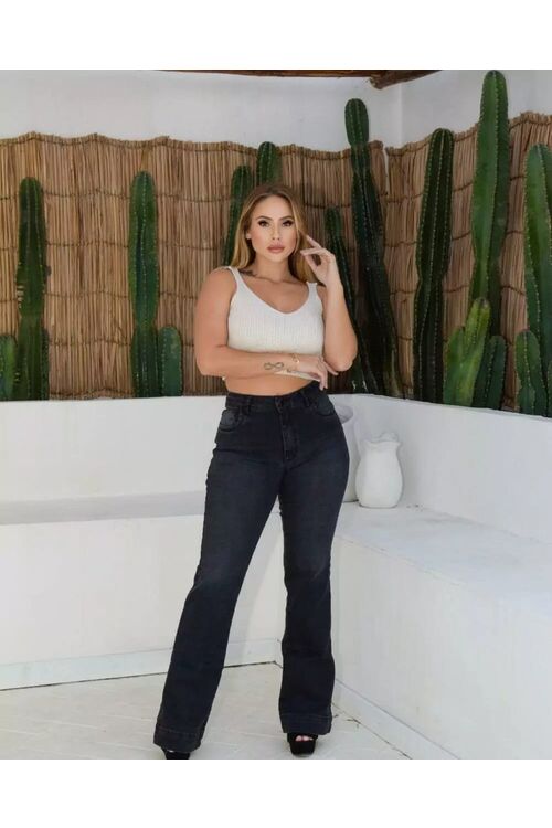 Home / Produtos / Feminino / Calça Jeans Plus Size e Slim / Calça Flare Regular Jeans Preto Shyros