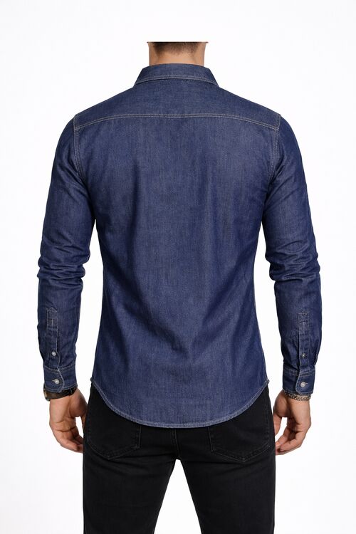 Camisa jeans masculina de manga longa, com lavagem stone e visual robusto.