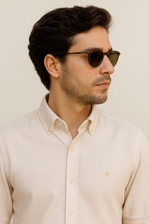 Home / Produtos / Masculino / Camisa Maquinetada MC Botão na Gola Bege Caw