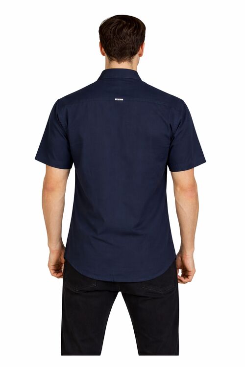 Camisa Masculina Sarja Manga Curta Marinho - R Sete - Dois Bolsos