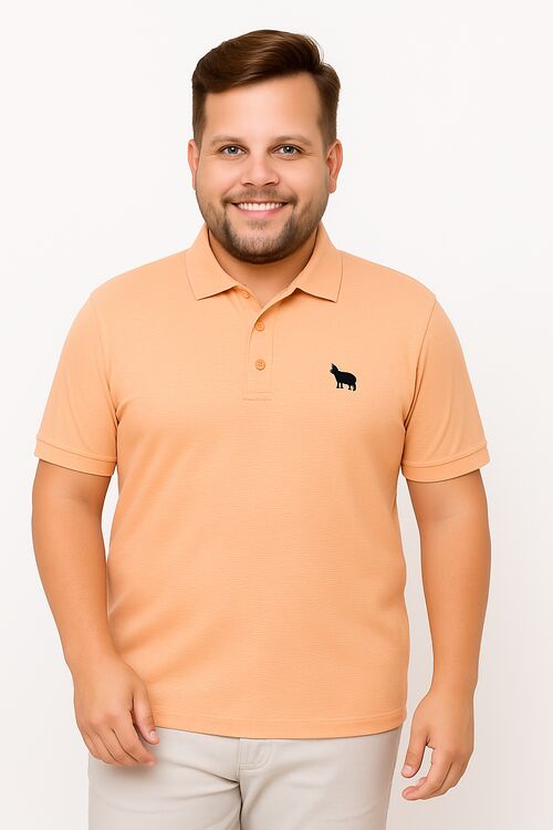 Camisa Polo Masculina Plus You Size – Meia Malha – Laranja – G4 ao G6