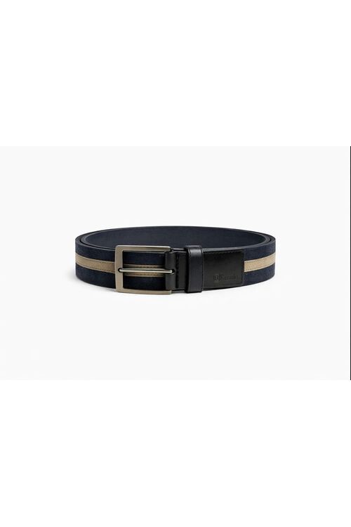 Cinto Masculino Fasolo Elástico Marinho com Ponteira em Couro e Fivela Escovada