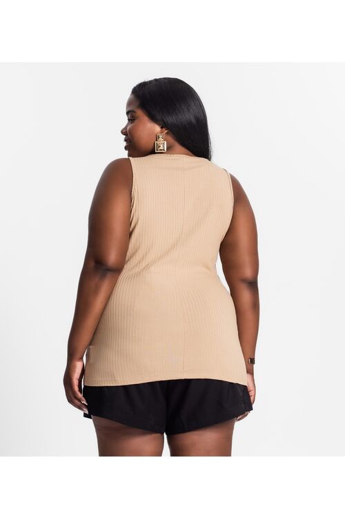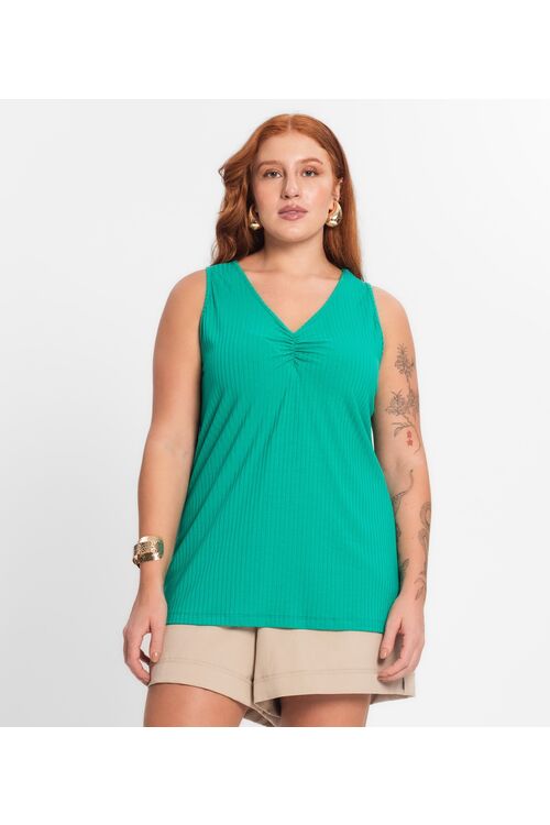 Regata Plus Size Secret Glam Canelada com Franzido no Decote – Viscose com Elastano