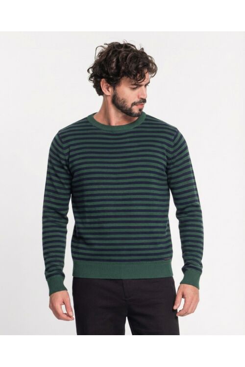 Blusa masculina em Tricot listrado, com toque macio e ótimo caimento. Modelo confortável, ideal para dias mais frescos e para compor looks versáteis com jeans, chino ou sobreposição com camisa.