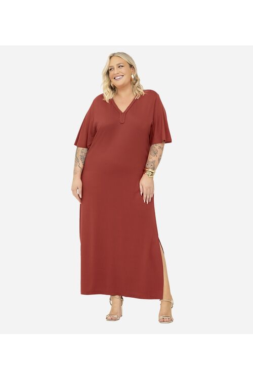 Vestido Midi Viscose Maquinetada Plus Size Secret