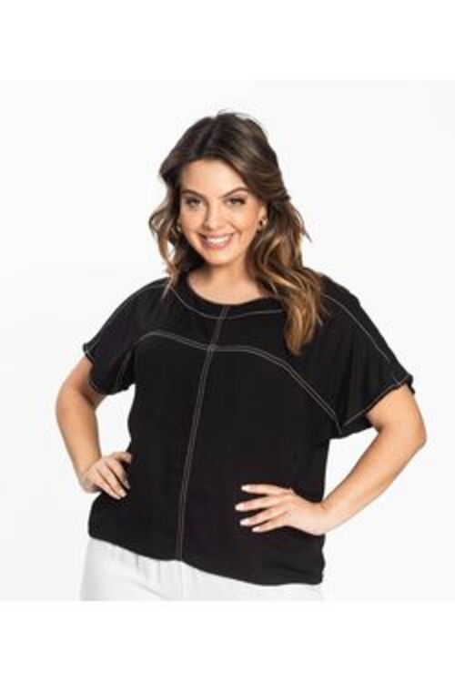 Blusa Cropped Plus Size Rovitex em Viscose com Pesponto Branco Contrastante