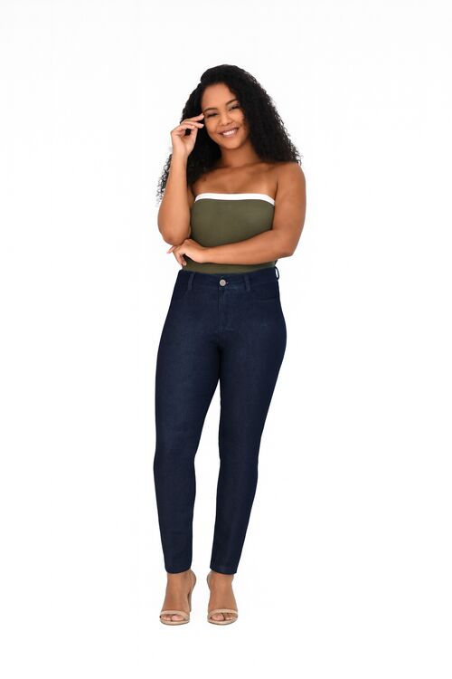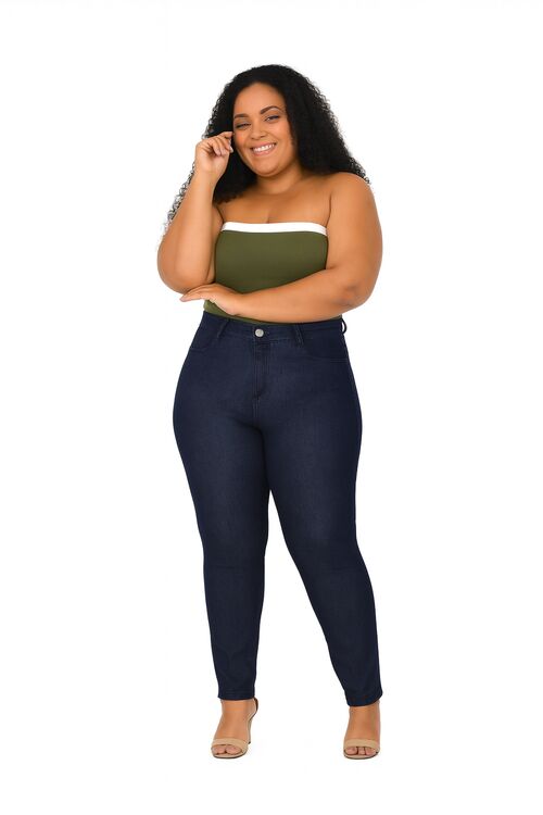 Confortável, moderna e versátil, a Skinny Plus Size da Muito Mais valoriza o corpo sem apertar e combina com tudo — do look casual ao mais arrumado.