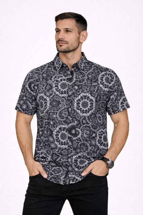 Camisa Masculina Estampada Manga Curta Cinza Six One com Elastano
