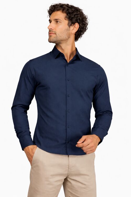 Camisa Masculina Slim Manga Longa Tricoline Marinho Caw
