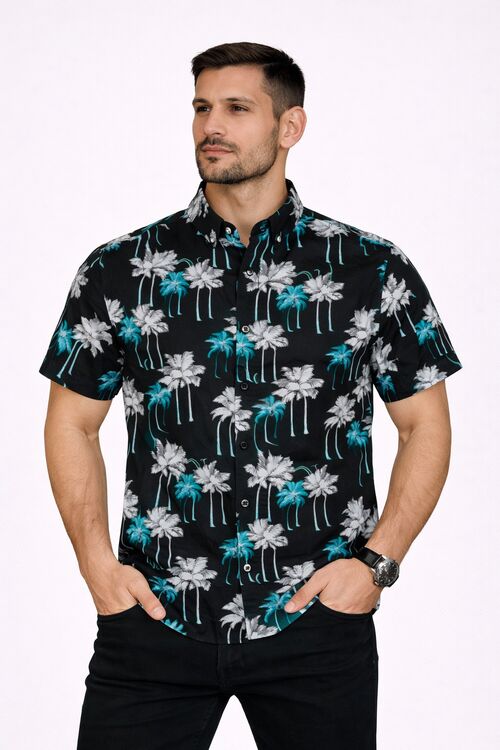 Home / Masculino / Camisas Masculinas / Camisa Masculina Viscose Estampada Manga Curta Preta Rovitex