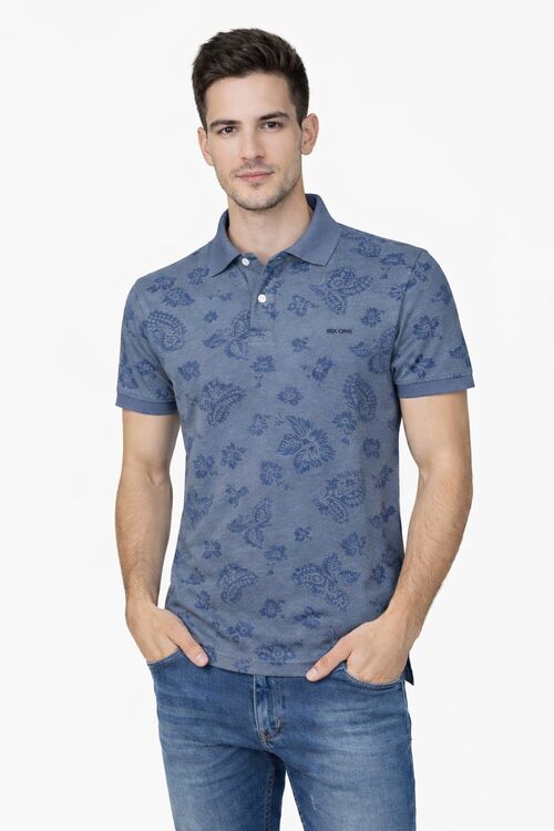 Camisa Polo Masculina Piquet Estampada Six One Confort Slim