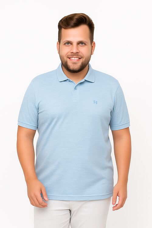 Camisa Polo Masculina Plus You Size – Meia Malha – Azul Claro – G4 ao G6