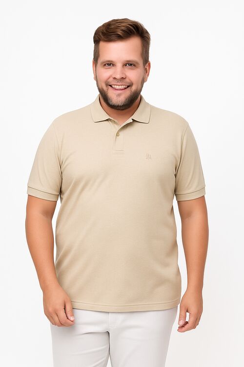 Camisa Polo Masculina Plus You Size – Meia Malha – Bege – G4 ao G6