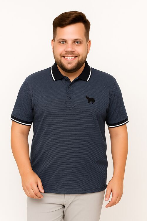 Camisa Polo Masculina Plus You Size – Meia Malha – Marinho – G4 ao G6