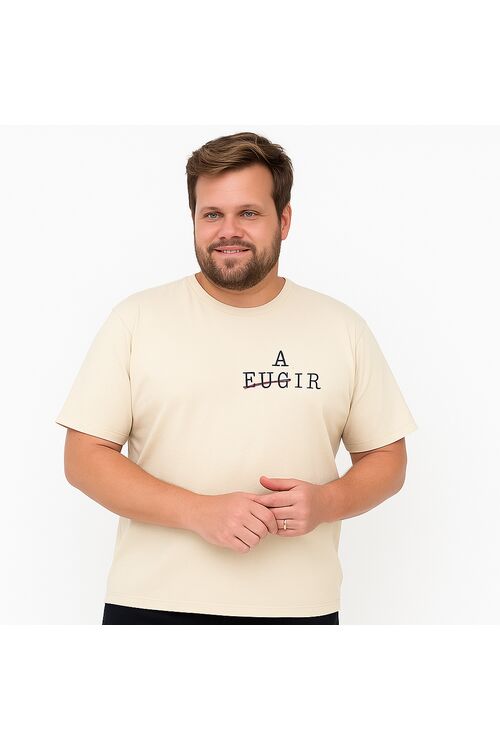 Camiseta Plus Size Estampada You Size Algodão Misto – Fugir ou Agir - Bege
