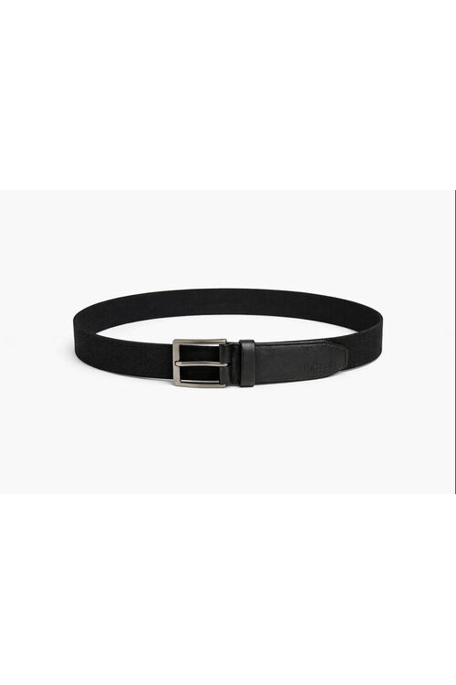 Cinto Masculino Fasolo Elástico Preto com Ponteira em Couro e Fivela Escovada