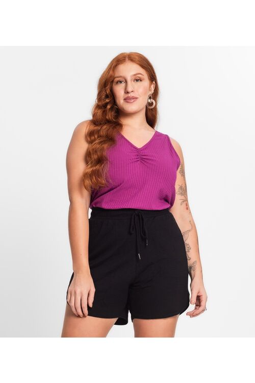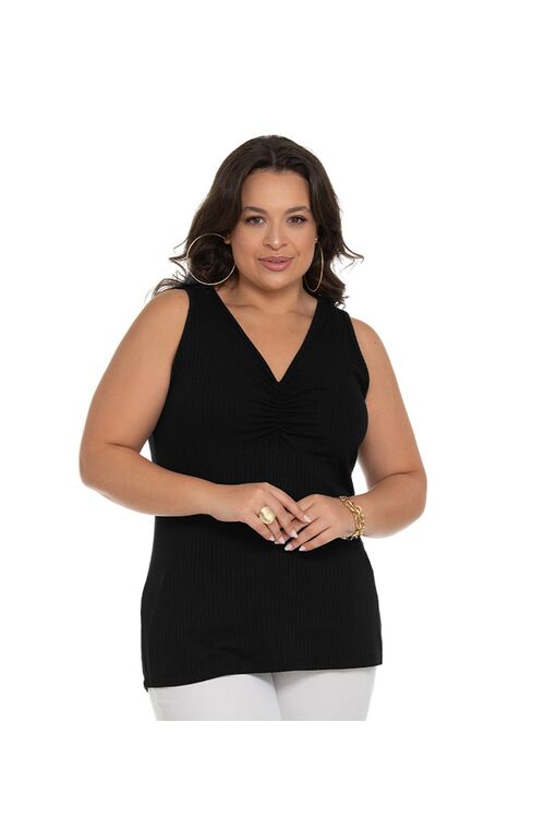 Home / Feminino / Regata Plus Size Secret Glam Canelada com Franzido no Decote – Viscose com Elastano
