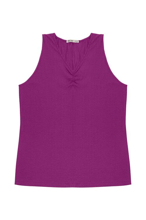 Home / Feminino / Regata Plus Size Secret Glam Canelada com Franzido no Decote – Viscose com Elastano