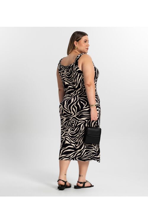 É a escolha perfeita para quem busca estilo e conforto. Confeccionado em viscotorcion, oferece leveza e elasticidade para garantir liberdade de movimento. Seu design conta com alças duplas, que adicionam um toque sofisticado, e um cinto que valoriza a silhueta. A estampa rotativa traz um visual moderno e exclusivo, possui uma abertural lateral, tornando o vestido ideal para diversas ocasiões, do dia a dia ao evento especial.