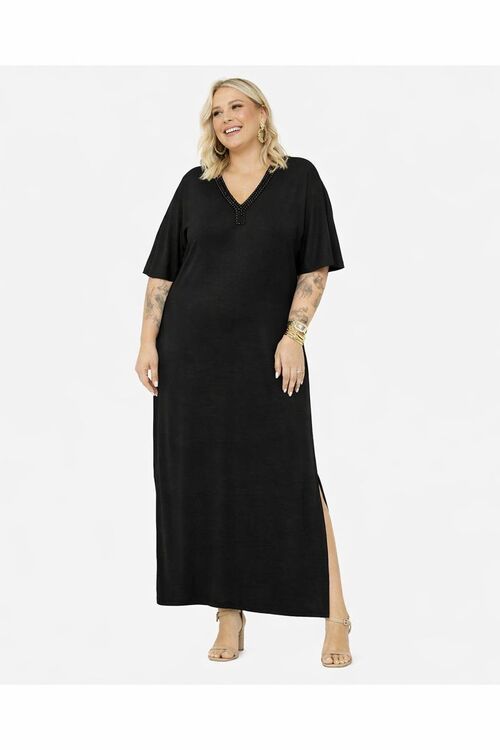 O Vestido Midi Plus Size Secret Glam é confeccionado em viscose maquinetada,